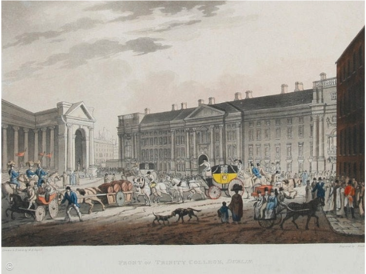 Malton, James. Front of Trinity College, Dublin. 1793. Aquatint, 20cm x 30cm.
